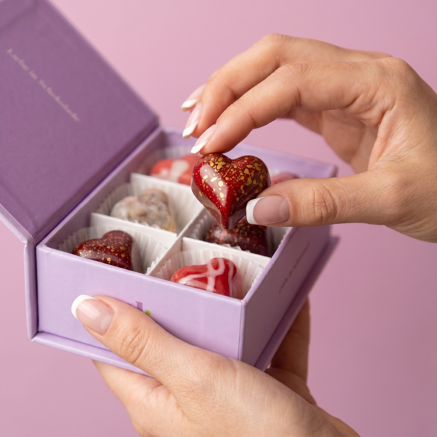 Wenn du auf der Suche nach einer besonderen Schokolade Geschenkidee bist, findest du bei mir genau das Richtige. Ich habe verschiedene Pralinen-Boxen, liebevoll gestaltete Adventskalender mit Pralinen und viele weitere kreative Geschenkoptionen, die sich perfekt für jeden Anlass eignen. Ich freue mich immer, wenn meine Pralinen als Geschenk eine besondere Freude bereiten. Jede Verpackung wird mit genauso viel Sorgfalt gestaltet wie die Schokoladen selbst – damit nicht nur der Geschmack überzeugt, sondern auch das Auge.